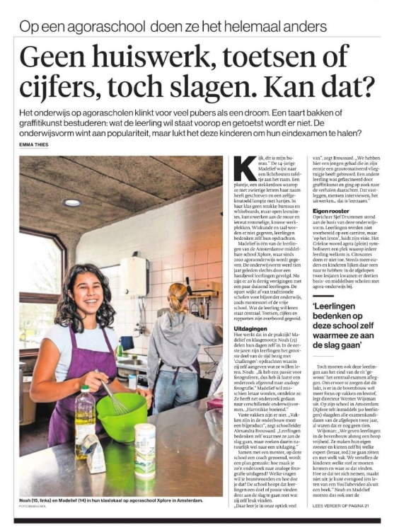 Lees hier het achtergrondartikel uit het AD over Xplore, een agora-school. Met ervaringsverhalen van leerlingen, coaches en experts.